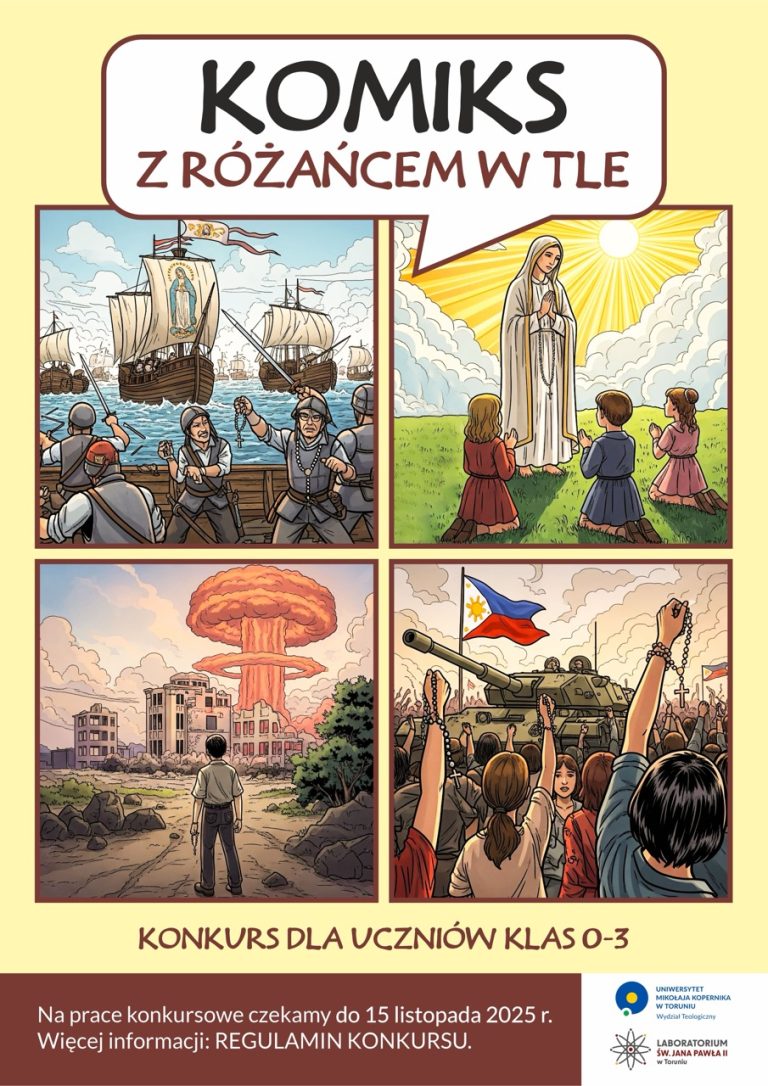Laboratorium św. Jana Pawła II zaprasza do wzięcia udziału w konkursie plastycznym „Komiks z różańcem w tle” adresowanym do uczniów klas 0-3 Szkół Podstawowych. Więcej informacji: REGULAMIN